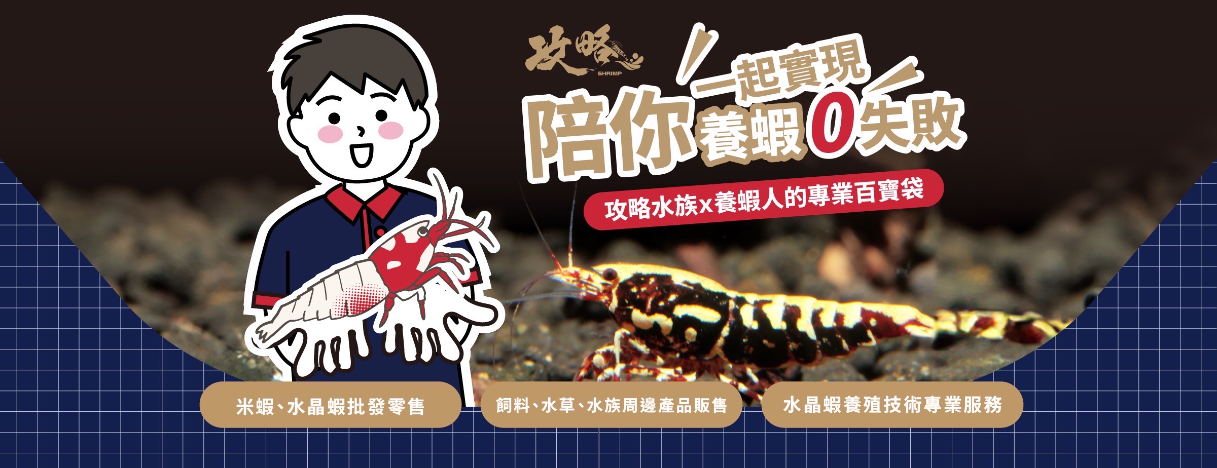 來自台灣高雄的水晶蝦繁殖場,擁有最專業的觀賞蝦養殖技術。我們致力培育高品質的米蝦和水晶蝦,目前種類高達五十多種。主要業務為量產觀賞蝦並將其出口至世界各地。近年來我們發現水晶蝦在台灣的水族館很少見,通常只有販售一般的彩色米蝦,以致有多數人不知道水晶蝦這種可愛的水族寵物。因此我們決定在台灣推廣水晶蝦讓大眾認識,開啟了台灣的零售市場,架設官網,提供全台配送服務。我們也在高雄梓官設立了一間觀賞蝦專賣店,現場有各式各樣的水晶蝦、米蝦、觀賞蝦飼料以及養蝦必備水族用品,還有最專業的人員教導如何正確飼養水晶蝦。